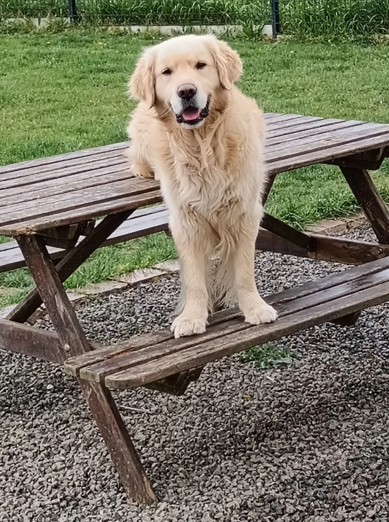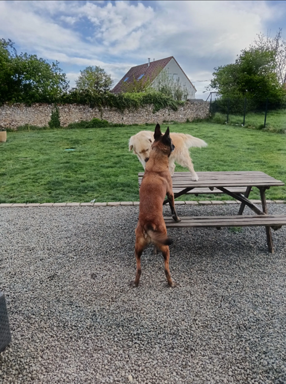 Votre ou vos chiens vivent avec nous, dans la maison et le jardin, le tout sur un terrain de 975 m². Tout le terrain est clôturé.